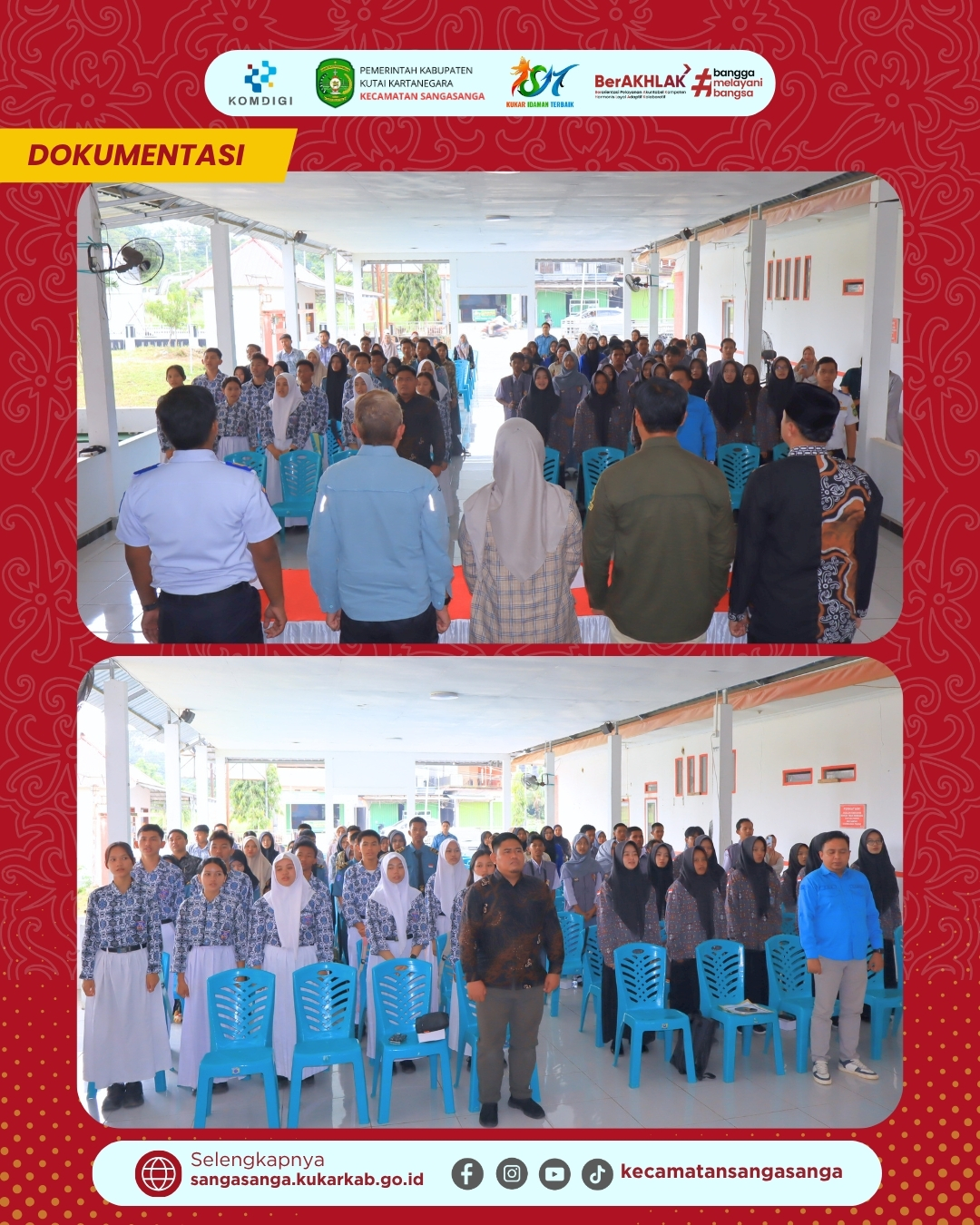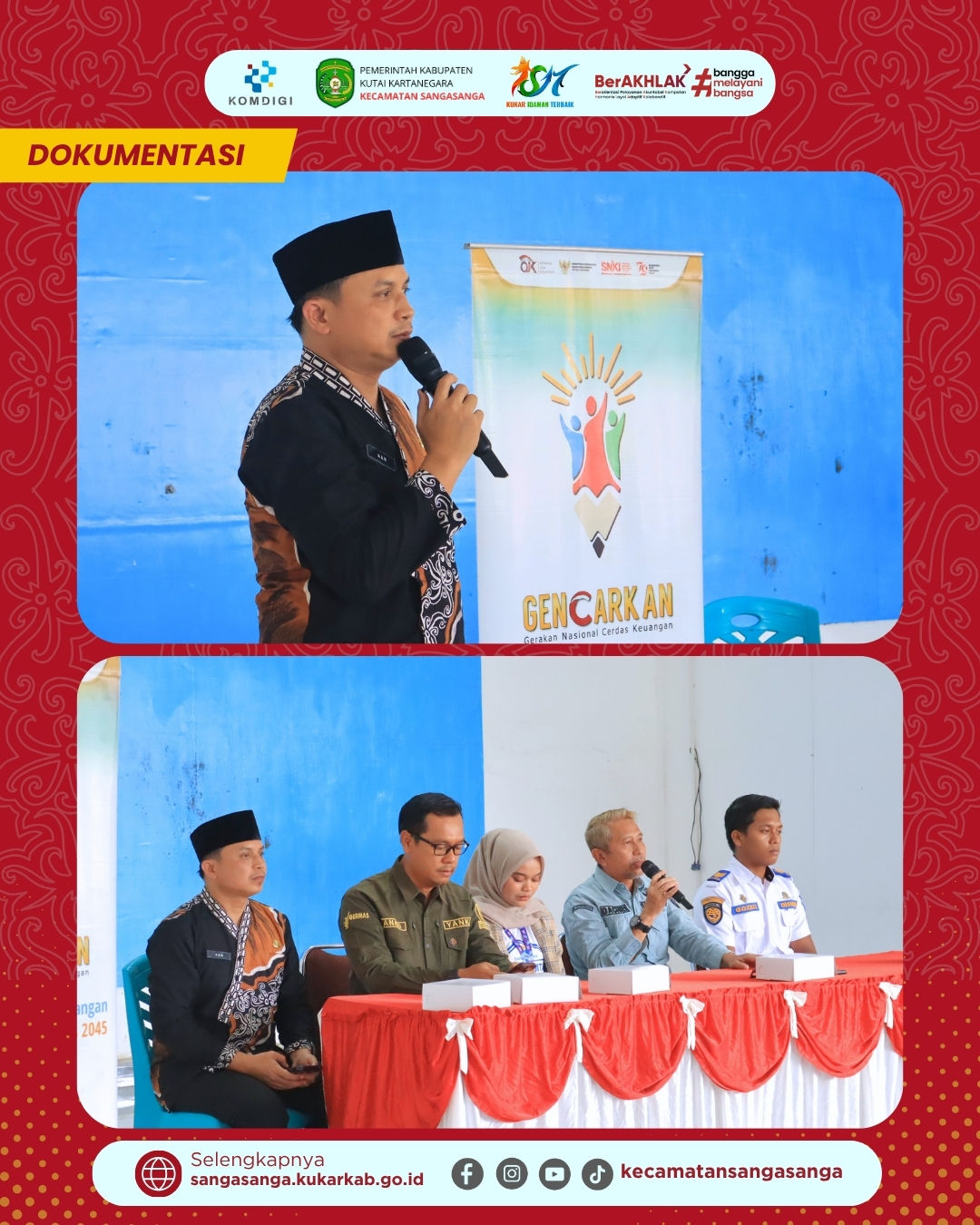 Kegiatan yang dibuka secara resmi pada pukul 08.30 WITA ini dihadiri langsung oleh Camat Sangasanga, Muhammad Dachriansyah, S.Sos., M.Si., beserta jajaran staf terkait. Hadir pula perwakilan dari Bagian Kesra Setdakab Kutai Kartanegara sebagai narasumber utama yang memberikan pendampingan teknis mengenai tata cara pendaftaran beasiswa. Camat Sangasanga dalam sambutannya menyampaikan apresiasi kepada Pemerintah Kabupaten Kutai Kartanegara yang telah memilih Sangasanga sebagai titik kumpul sosialisasi bagi wilayah pesisir. Beliau menegaskan bahwa keberadaan beasiswa ini adalah peluang emas bagi para pelajar dan mahasiswa untuk meringankan beban biaya pendidikan mereka. Kolaborasi antarinstansi ini diharapkan dapat memastikan informasi mengenai Beasiswa Kukar Idaman tersampaikan secara merata hingga ke tingkat desa dan kelurahan.