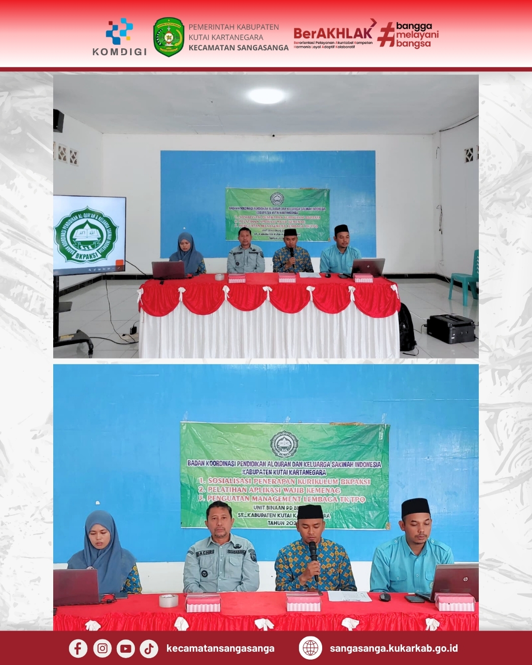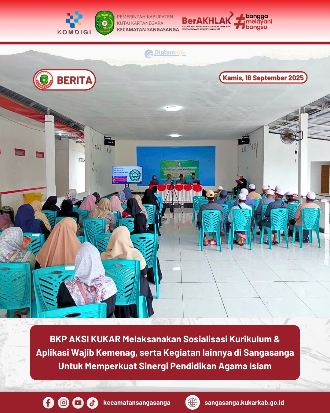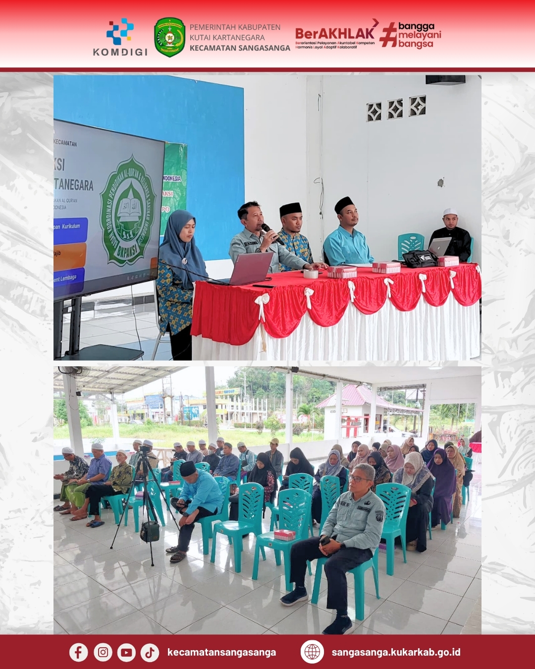Pada hari Kamis, 18 September 2025, bertempat di Aula Graha Nusantara Kantor Camat Sangasanga, telah diselenggarakan pertemuan penting antara Pemerintah Kecamatan Sangasanga dan Badan Koordinasi Pendidikan Al-Qur’an & Keluarga Sakinah Indonesia (BKP AKSI). Acara ini merupakan wujud nyata dari sinergi antara pemerintah dan organisasi keagamaan dalam membangun masyarakat yang religius dan berpendidikan. Camat Sangasanga, Bapak M. Dachriansyah, S.Sos., M.Si., turut hadir secara langsung untuk memberikan dukungan penuh terhadap kolaborasi ini. Kehadiran beliau menunjukkan komitmen kuat Pemerintah Kecamatan dalam memfasilitasi setiap inisiatif positif yang membawa manfaat bagi seluruh warga. Pertemuan ini berjalan dengan lancar dan penuh keakraban, membuka jalan bagi berbagai program strategis di masa depan.