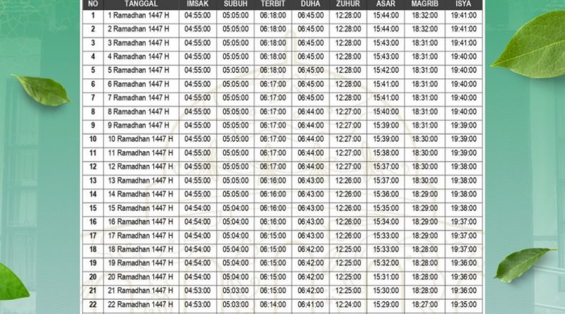Jadwal imsakiyah ini juga memuat jadwal shalat 5 waktu untuk shalat subuh, shalat zuhur, shalat asar, shalat maghrib, dan shalat isya.
