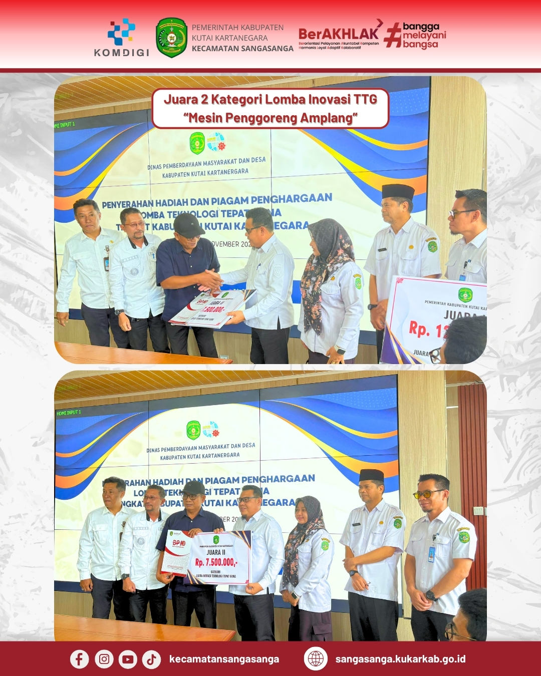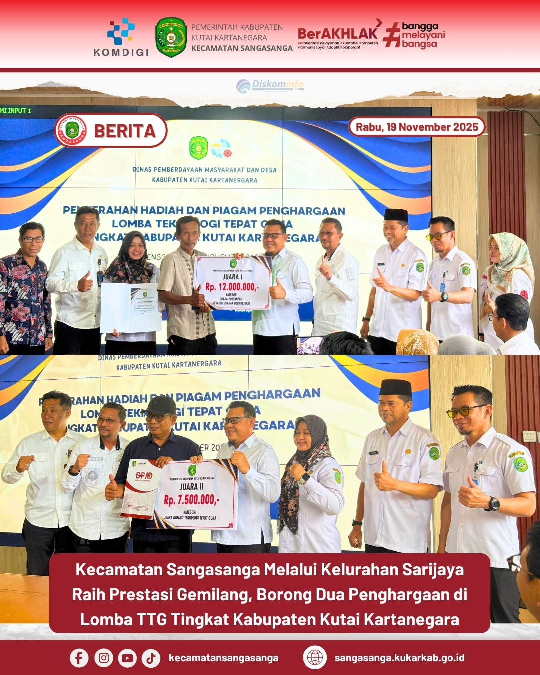Kecamatan Sangasanga kembali mencatatkan sejarah membanggakan melalui prestasi luar biasa yang ditorehkan oleh perwakilan Kelurahan Sarijaya di tingkat Kabupaten Kutai Kartanegara. Dalam ajang bergengsi Lomba Teknologi Tepat Guna (TTG) tahun 2025 yang diselenggarakan oleh Dinas Pemberdayaan Masyarakat dan Desa (DPMD), Kelurahan Sarijaya berhasil memborong dua penghargaan sekaligus yang menegaskan kualitas inovasi masyarakatnya. Keberhasilan ini menjadi bukti nyata bahwa pembinaan teknologi tepat guna di wilayah Kecamatan Sangasanga berjalan dengan sangat efektif dan mampu bersaing dengan wilayah lain. Ajang ini sendiri merupakan platform strategis yang mempertemukan berbagai inovator terbaik daerah untuk mempresentasikan solusi teknologi yang bermanfaat bagi masyarakat luas. Kemenangan ini tentunya menjadi kebanggaan tersendiri bagi seluruh warga Kecamatan Sangasanga yang antusias mendukung kemajuan teknologi berbasis kearifan lokal.