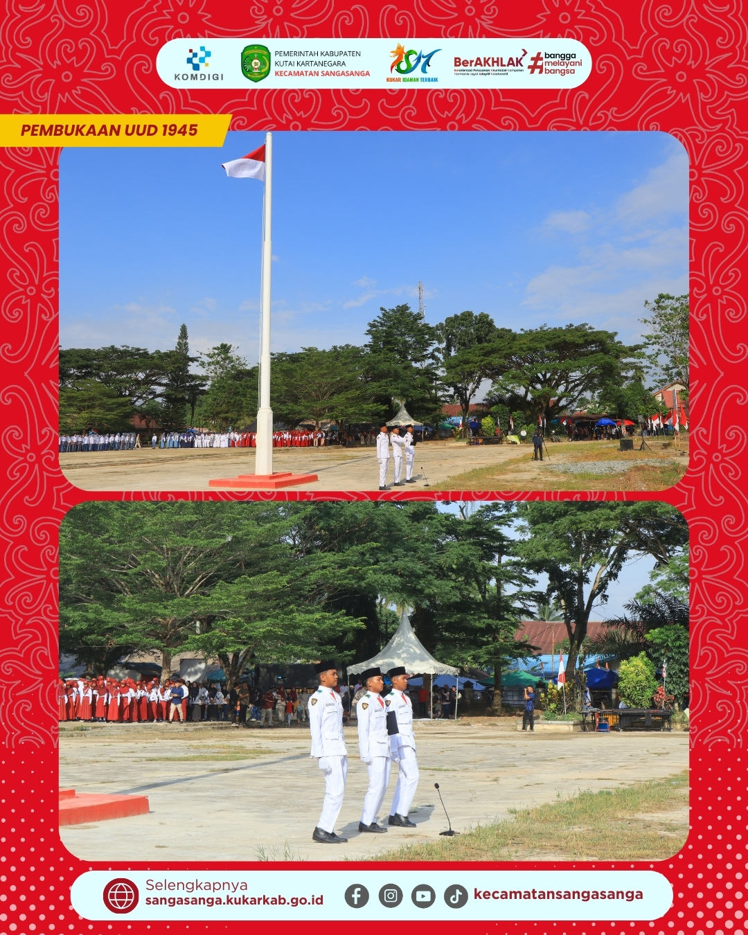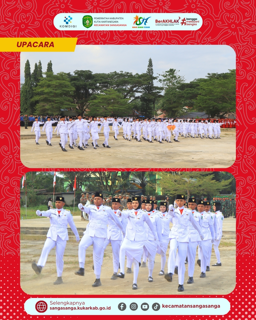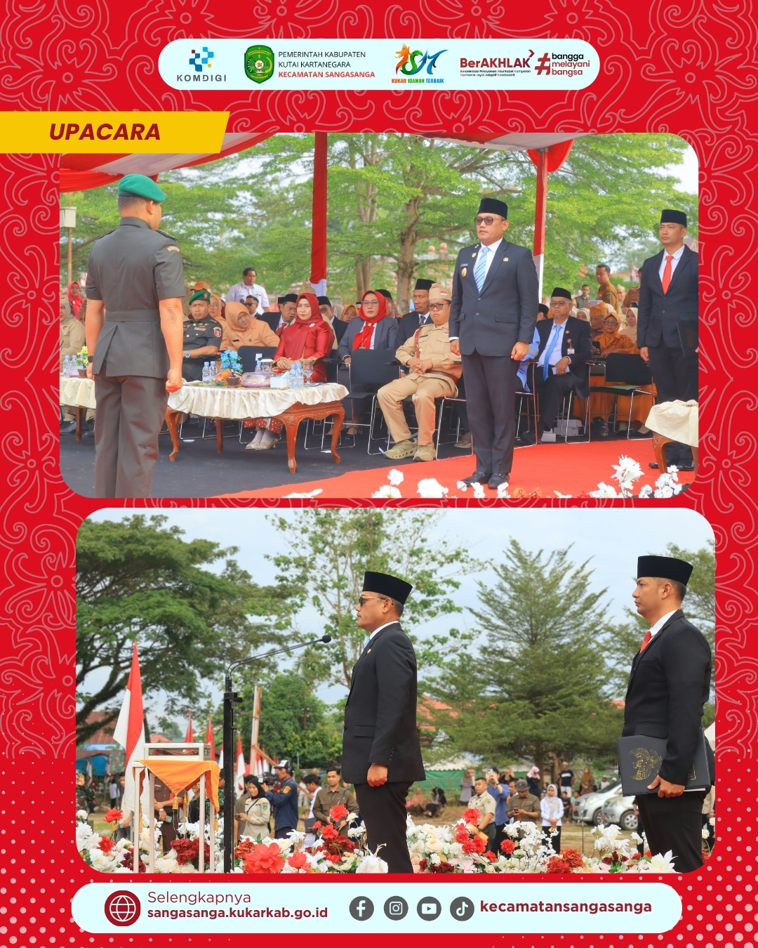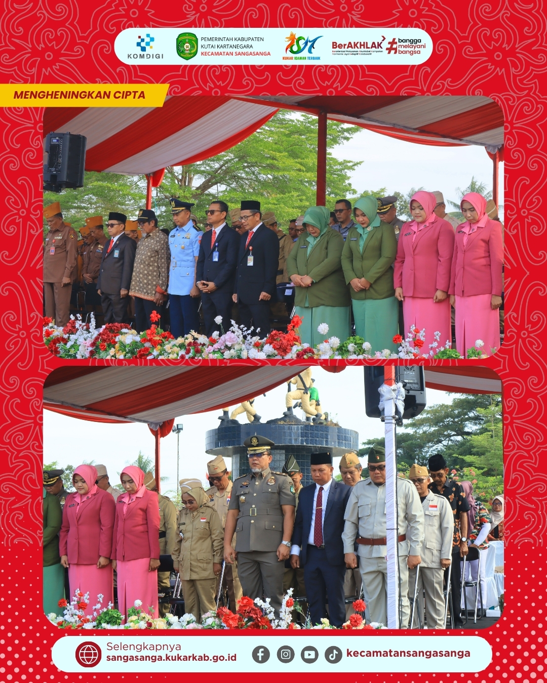 Suasana upacara berlangsung dengan tata aturan militer yang disiplin, melibatkan berbagai elemen pasukan upacara mulai dari TNI, Polri, Satpol PP, Dinas Perhubungan, Korp Musik (Korsik), hingga pelajar dan organisasi kemasyarakatan. Pasukan Pengibar Bendera (Paskibra) menjalankan tugas suci mereka dengan sempurna, mengibarkan Sang Merah Putih di langit Sangasanga yang cerah, diiringi lagu kebangsaan Indonesia Raya yang menggema membakar semangat nasionalisme seluruh peserta. Barisan pasukan yang rapi dan seragam kebesaran yang dikenakan oleh para pejabat serta petugas upacara menambah kewibawaan jalannya peringatan peristiwa heroik tersebut. Wakil Gubernur Kaltim dan Wakil Bupati Kukar tampak mengikuti seluruh rangkaian prosesi dengan saksama, mulai dari penghormatan umum hingga mengheningkan cipta untuk mengenang jasa para kusuma bangsa. Sinergitas antarinstansi yang terlihat di lapangan menjadi simbol persatuan yang kokoh dalam melanjutkan pembangunan di daerah ini.