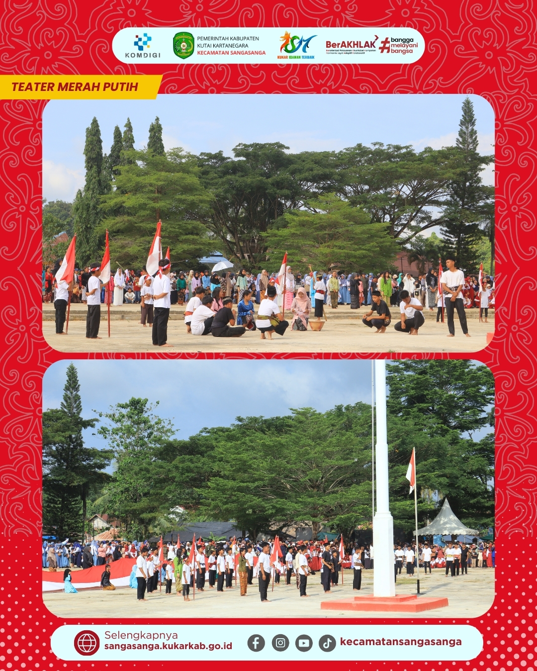 Kemeriahan acara di Taman Palagan ditutup dengan persembahan seni yang sangat dinanti-nantikan, yaitu penampilan Operet Merah Putih. Teater Merah Putih Sangasanga menyuguhkan visualisasi dramatis tentang pertempuran sengit para pejuang Sangasanga melawan tentara Belanda. Adegan demi adegan yang menampilkan keberanian dan strategi perang gerilya diperagakan dengan penuh penjiwaan, membuat suasana menjadi haru sekaligus membanggakan. Tepuk tangan meriah dari Wakil Gubernur, Wakil Bupati, dan seluruh peserta upacara mengapresiasi totalitas para pemain teater yang berhasil menghidupkan kembali semangat ‘Merah Putih’.