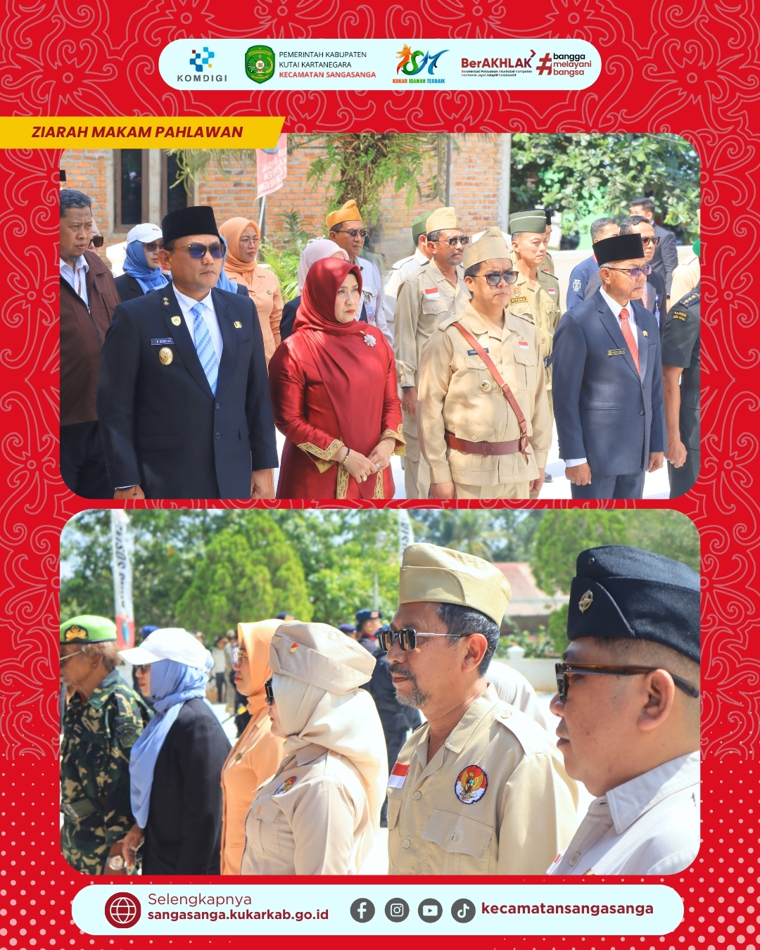 Usai menyaksikan penampilan teatrikal yang menggugah semangat di Taman Palagan, rangkaian peringatan dilanjutkan dengan agenda ziarah ke Taman Makam Pahlawan (TMP) Wadah Batuah. Dalam pergeseran menuju lokasi ziarah, rombongan pimpinan daerah menunjukkan kekompakan dengan bergerak secara beriringan menggunakan transportasi bus. Rombongan Wakil Gubernur Kalimantan Timur tampak menaiki bus operasional Pemerintah Provinsi, sementara rombongan Wakil Bupati Kutai Kartanegara menggunakan bus Pemerintah Kabupaten. Setibanya di TMP Wadah Batuah, suasana berlangsung hening dan syahdu saat Bapak Seno Aji dan Bapak Rendi Solihin, diikuti jajaran Forkopimda, melakukan prosesi tabur bunga di pusara para pejuang. Momen ini menjadi wujud penghormatan terakhir dalam rangkaian acara pagi itu, seraya memanjatkan doa bagi arwah pahlawan yang telah gugur.