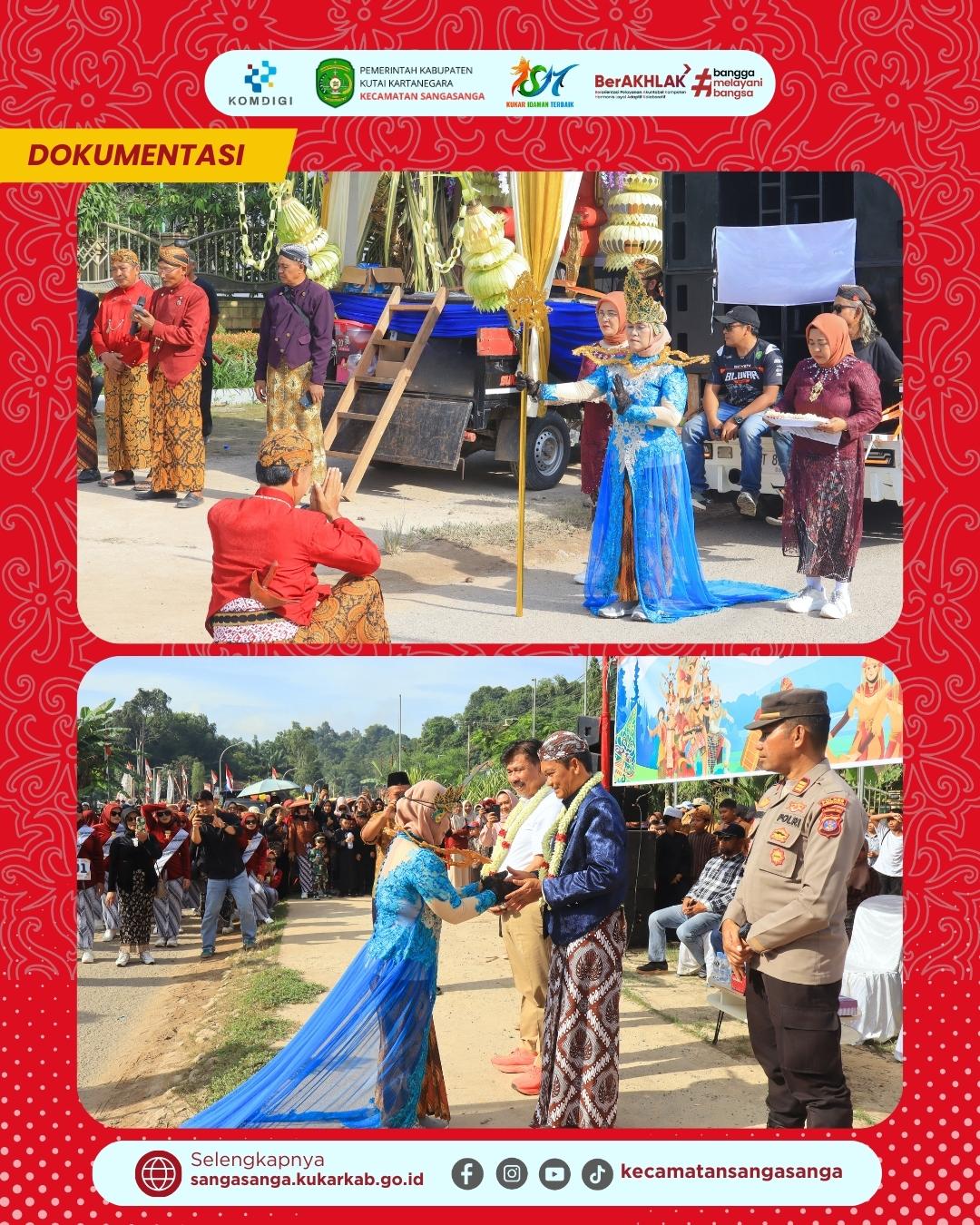 Sebelum dimulainya karnaval, para undangan disuguhi penampilan memukau tarian adat Jawa yang dipadukan dengan pembacaan narasi dalam bahasa Jawa yang kental dengan nilai filosofis. Sebagai bentuk penghormatan, dilakukan prosesi pengalungan bunga kepada Bapak Sekda dan Bapak Lurah Jawa sebagai simbol dimulainya rangkaian acara inti. Puncak pembukaan ditandai dengan bunyi sirine yang menggema serta nyala kembang api yang mewarnai langit Sangasanga sebagai tanda dimulainya lomba karnaval. Seluruh rangkaian pembukaan ini memperlihatkan sinergi yang kuat antara pemerintah daerah, pemerintah kecamatan, dan seluruh elemen masyarakat dalam merayakan sejarah panjang Kelurahan Jawa.