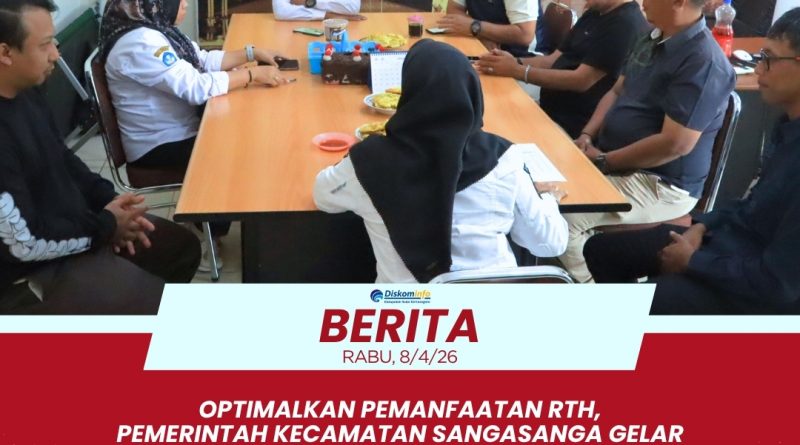 SANGASANGA – Pemerintah Kecamatan Sangasanga menunjukkan komitmennya dalam mengelola fasilitas publik dengan menyelenggarakan rapat koordinasi terkait rencana pemanfaatan Ruang Terbuka Hijau (RTH). Rapat yang berlangsung pada Rabu, 08 April 2026 ini dilaksanakan sebagai tindak lanjut atas aspirasi kelompok masyarakat yang ingin mengisi kegiatan hiburan di area tersebut. Bertempat di Ruang Sekretaris Camat (Sekcam) Sangasanga, pertemuan ini dihadiri oleh jajaran internal pemerintahan serta perwakilan lembaga terkait. Agenda utama pertemuan ini difokuskan pada pemantapan kesiapan teknis agar setiap kegiatan yang akan dilaksanakan berjalan tertib dan sesuai prosedur. Pemerintah berharap melalui koordinasi ini, RTH tidak hanya menjadi tempat bersantai, tetapi juga pusat kreativitas masyarakat yang terorganisir dengan baik.