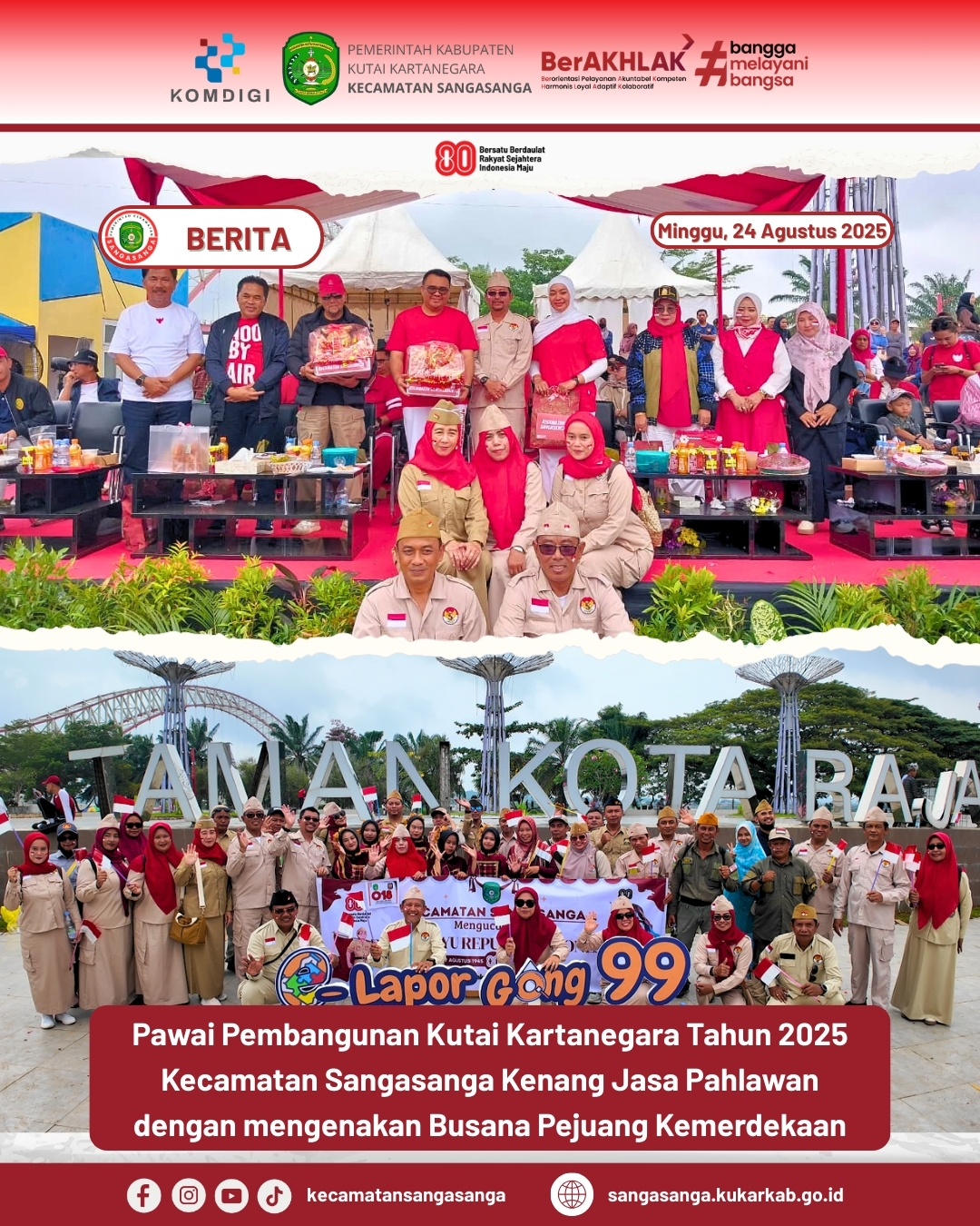 Sangasanga, 24 Agustus 2025 – Kecamatan Sangasanga menunjukkan semangat kebersamaan dan nasionalisme yang tinggi dalam Pawai Pembangunan Kabupaten Kutai Kartanegara, Minggu (24/8/2025). Acara yang diselenggarakan di Tenggarong ini menjadi momen bagi seluruh jajaran pemerintah dan masyarakat Sangasanga untuk berpartisipasi aktif. Rombongan pawai yang terdiri dari staf Kantor Camat Sangasanga, staf Kelurahan se-Kecamatan Sangasanga, serta tenaga teknis dari Diskominfo Kutai Kartanegara, kompak mengenakan busana pejuang kemerdekaan berwarna krem. Pilihan busana ini tidak hanya estetik, tetapi juga sarat makna, mengingatkan kembali akan perjuangan para pahlawan dalam merebut kemerdekaan.