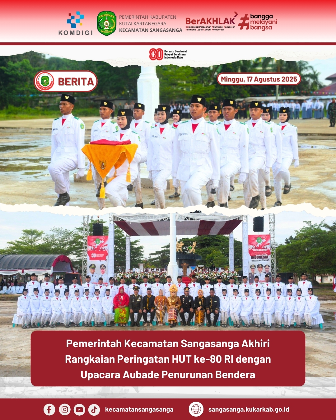 Pemerintah Kecamatan Sangasanga Akhiri Rangkaian Peringatan HUT ke-80 RI dengan Upacara Aubade Penurunan Bendera