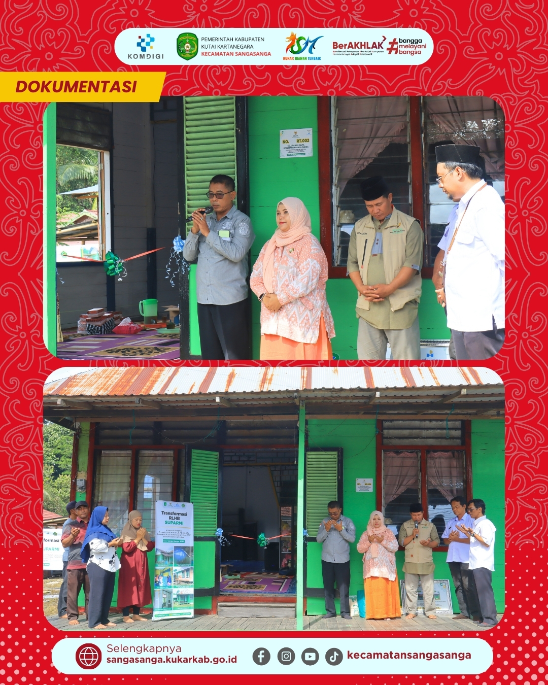 SANGASANGA – Pemerintah Kecamatan Sangasanga secara resmi melaksanakan peresmian Program Rumah Layak Huni Baznas (RLHB) Kabupaten Kutai Kartanegara Tahun 2025 yang berlokasi di Kelurahan Jawa. Kegiatan ini merupakan bentuk nyata kepedulian terhadap masyarakat yang membutuhkan hunian lebih representatif dan sehat untuk menunjang kehidupan sehari-hari. Pada kesempatan kali ini, kebahagiaan menyelimuti dua orang warga Kecamatan Sangasanga, yakni Ibu Suparmi dan Bapak Bambang, yang terpilih sebagai penerima manfaat program transformasi rumah tersebut. Acara peresmian ditandai dengan prosesi pemotongan pita dan penyerahan simbolis bantuan di depan rumah yang telah selesai direnovasi. Kehadiran hunian baru ini diharapkan mampu memberikan semangat baru bagi keluarga penerima dalam meningkatkan kualitas hidup mereka di lingkungan masyarakat.