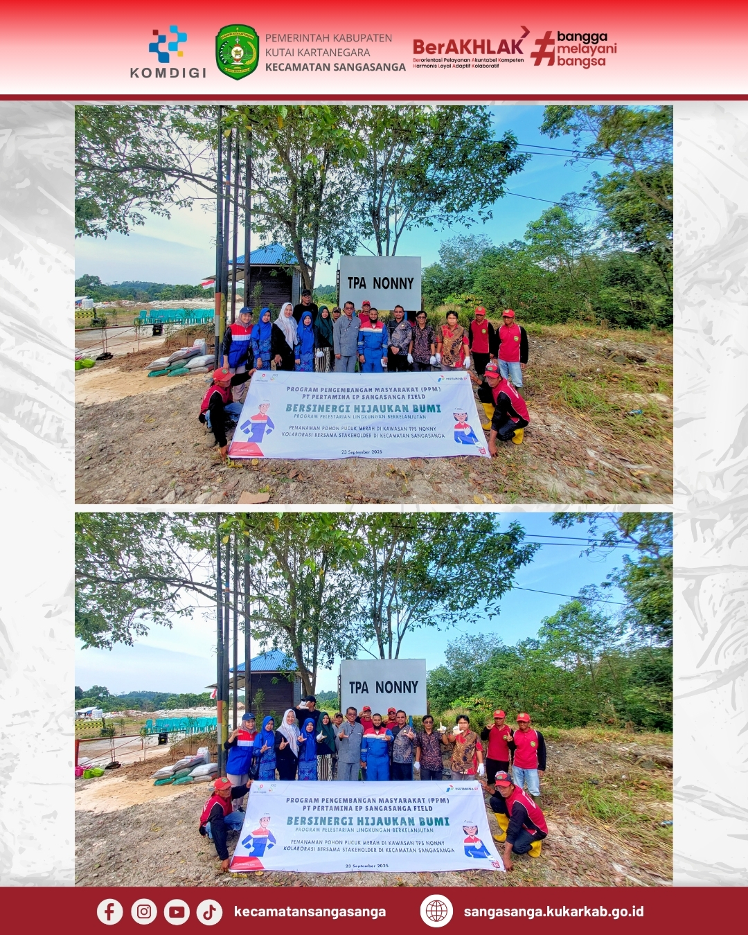 Acara diakhiri dengan sesi foto bersama yang penuh makna, di mana seluruh hadirin berkumpul di depan plang TPS Nonny. Dengan bangga, mereka memegang banner bertuliskan “Program Pengembangan Masyarakat (PPM) PT Pertamina EP Sangasanga Field Bersinergi Hijaukan Bumi Program Pelestarian Lingkungan Berkelanjutan Penanaman Pohon Pucuk Merah di Kawasan TPS Nonny Kolaborasi bersama Stakeholder di Kecamatan Sangasanga 23 September 2025”. Foto ini menjadi bukti visual dari kesuksesan kegiatan dan komitmen bersama untuk menjaga lingkungan. Ke depannya, diharapkan lebih banyak program serupa yang dapat dilaksanakan untuk mewujudkan Sangasanga yang lebih hijau dan lestari.