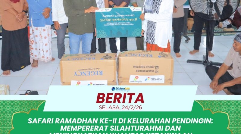 SANGASANGA – Rangkaian Safari Ramadhan 1447 H tingkat Kecamatan Sangasanga berlanjut ke titik kedua yang dilaksanakan di Kelurahan Pendingin pada Selasa, 24 Februari 2026. Meskipun terdapat perubahan lokasi dari jadwal semula di Masjid Asy Syifa, kegiatan tetap berlangsung khidmat di Langgar Al Hilal dengan kehadiran jajaran pejabat kecamatan serta tokoh masyarakat. Acara dibuka secara resmi oleh Bapak Sugiono yang menekankan pentingnya menjaga kekhusyukan ibadah di tengah kesibukan sehari-hari. Pelaksanaan kegiatan ini tetap mengikuti format acara tahun 2026, yakni penyampaian tausiah dan sambutan dilakukan sebelum memasuki waktu berbuka puasa. Tim Safari Kecamatan yang hadir menunjukkan sinergi yang kuat antara pemerintah dan warga dalam menyemarakkan syiar Islam di Kelurahan Pendingin.
