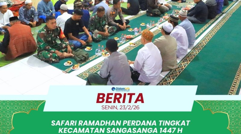 Pemerintah Kecamatan Sangasanga resmi memulai rangkaian Safari Ramadhan 1447 H / 2026 M yang bertempat di Masjid Al-Muchlisin, Kelurahan Sangasanga Muara pada hari Senin, 23 Februari 2026. Kegiatan ini menjadi pembuka dari lima rangkaian kunjungan ke seluruh kelurahan di wilayah Sangasanga sebagai bentuk syiar Islam dan pelayanan kepada masyarakat. Rombongan Tim Safari yang berjumlah sekitar 35 berkumpul di Halaman Masjid Al Mukarromah sejak pukul 16.30 WITA sebelum bergerak menuju lokasi acara. Momentum ini diharapkan menjadi sarana mempererat silaturahmi antara pemerintah kecamatan, instansi vertikal, pihak swasta, dan seluruh lapisan warga Sangasanga Muara.