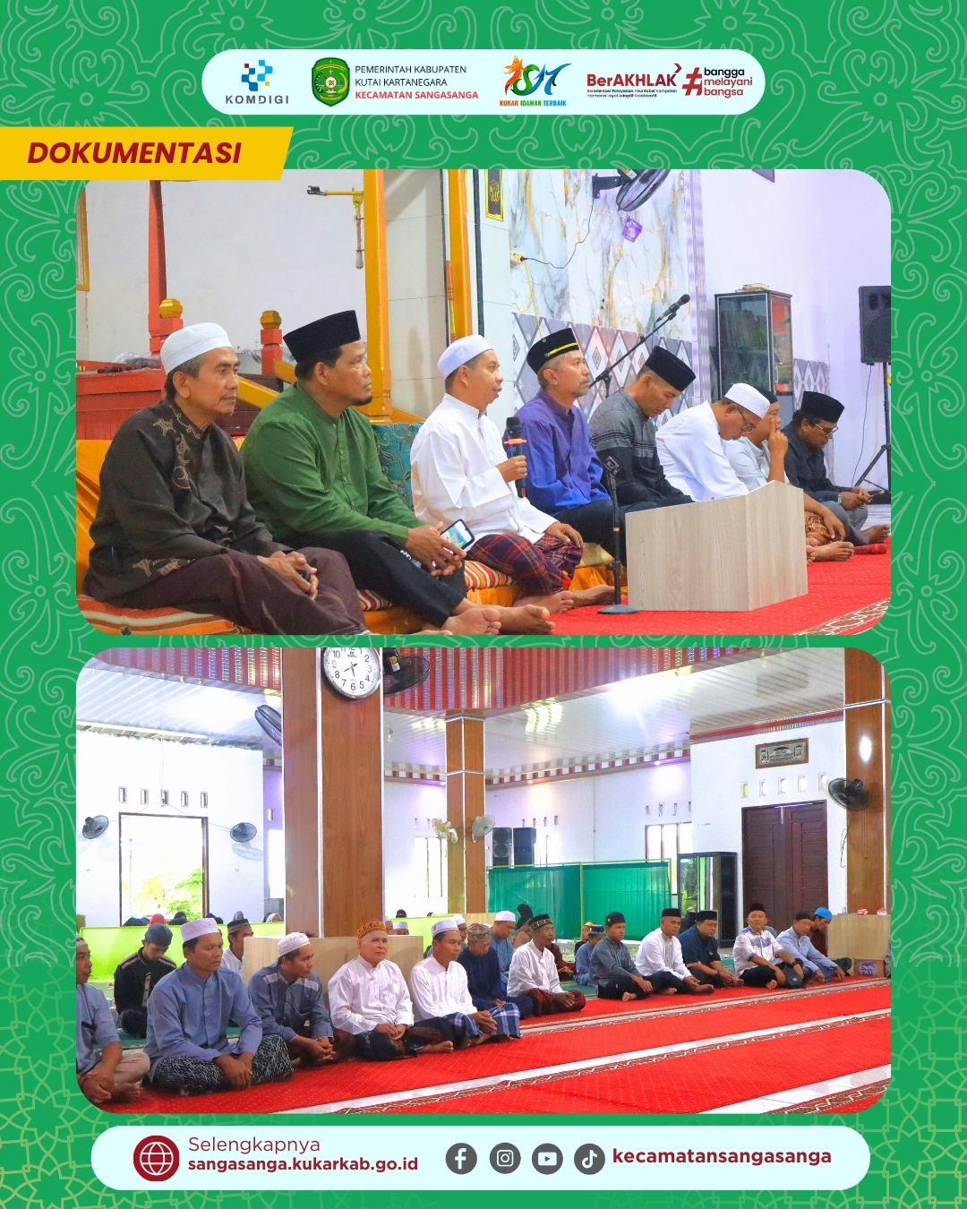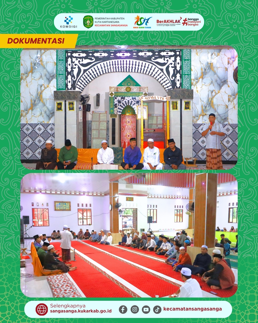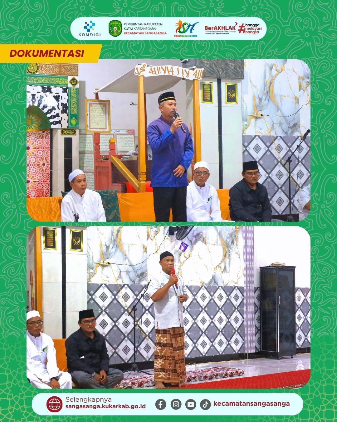 Pemerintah Kecamatan Sangasanga resmi memulai rangkaian Safari Ramadhan 1447 H / 2026 M yang bertempat di Masjid Al-Muchlisin, Kelurahan Sangasanga Muara pada hari Senin, 23 Februari 2026. Kegiatan ini menjadi pembuka dari lima rangkaian kunjungan ke seluruh kelurahan di wilayah Sangasanga sebagai bentuk syiar Islam dan pelayanan kepada masyarakat. Rombongan Tim Safari yang berjumlah sekitar 35 berkumpul di Halaman Masjid Al Mukarromah sejak pukul 16.30 WITA sebelum bergerak menuju lokasi acara. Momentum ini diharapkan menjadi sarana mempererat silaturahmi antara pemerintah kecamatan, instansi vertikal, pihak swasta, dan seluruh lapisan warga Sangasanga Muara.