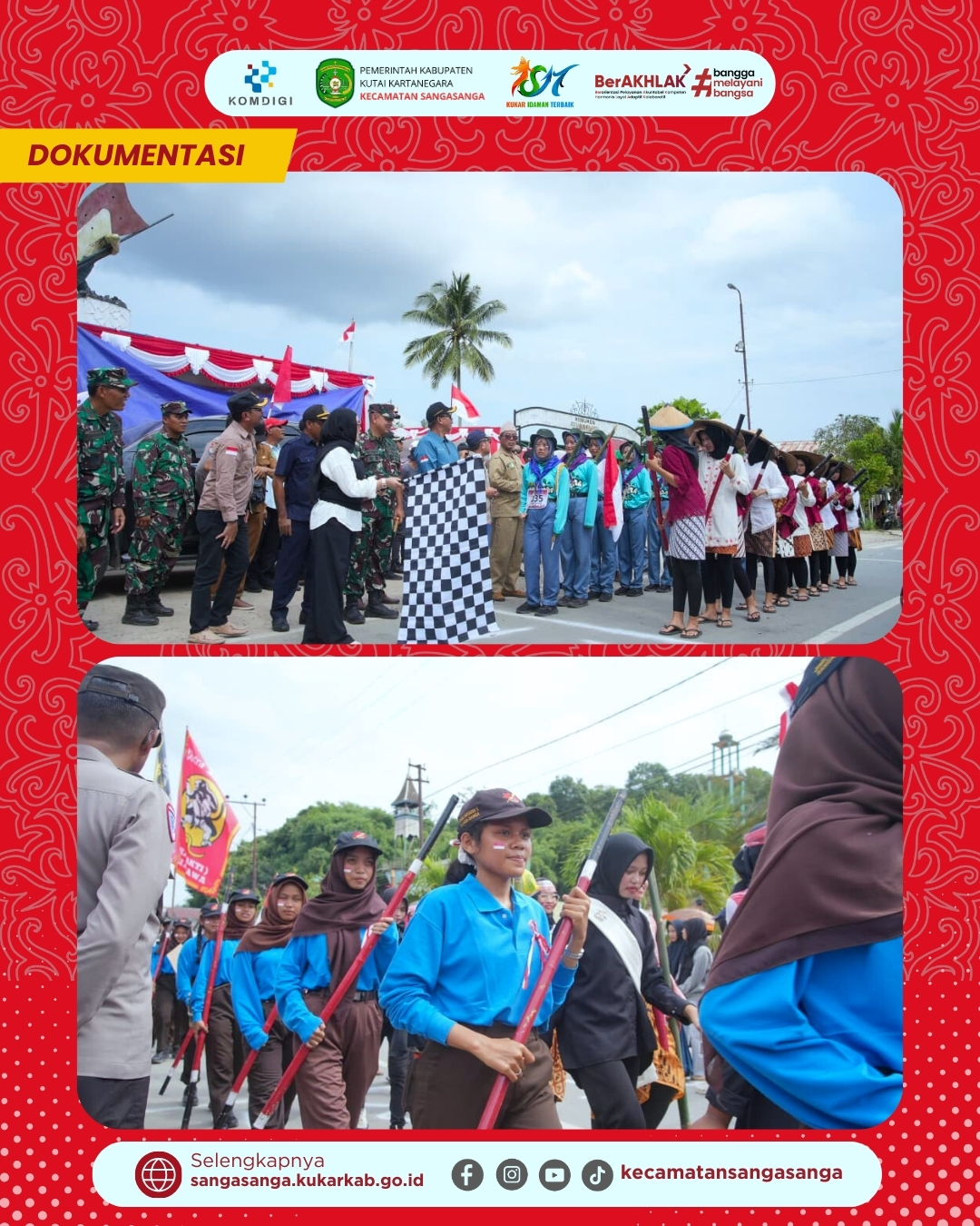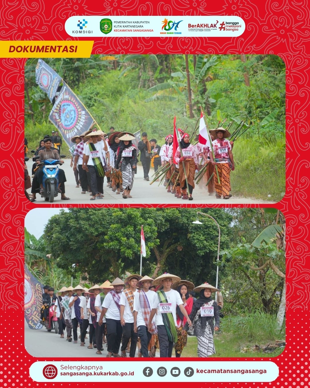 Jalanan Sangasanga seketika berubah menjadi arena Pesta Rakyat yang meriah di sepanjang rute yang dilalui oleh iring-iringan peserta hingga garis finis. Ke-37 regu yang berpartisipasi tampil totalitas dengan mengenakan beragam kostum kreatif, mulai dari seragam pejuang tempo dulu, pakaian adat nusantara, hingga atribut perguruan pencak silat yang membawa panji-panji kebesaran. Warga masyarakat pun tumpah ruah ke pinggir jalan untuk menyemangati para peserta, menciptakan suasana kekeluargaan yang kental di tengah teriknya siang hari. Pengawalan ketat dari pihak kepolisian dan petugas Dishub memastikan seluruh rangkaian kegiatan berjalan aman dan lancar tanpa hambatan berarti bagi pengguna jalan lainnya. Kegiatan ini berakhir sukses sekitar pukul 17.00 WITA, menjadi pembuka yang sempurna sebelum dilanjutkannya agenda pembukaan Gelar UMKM pada sore harinya.