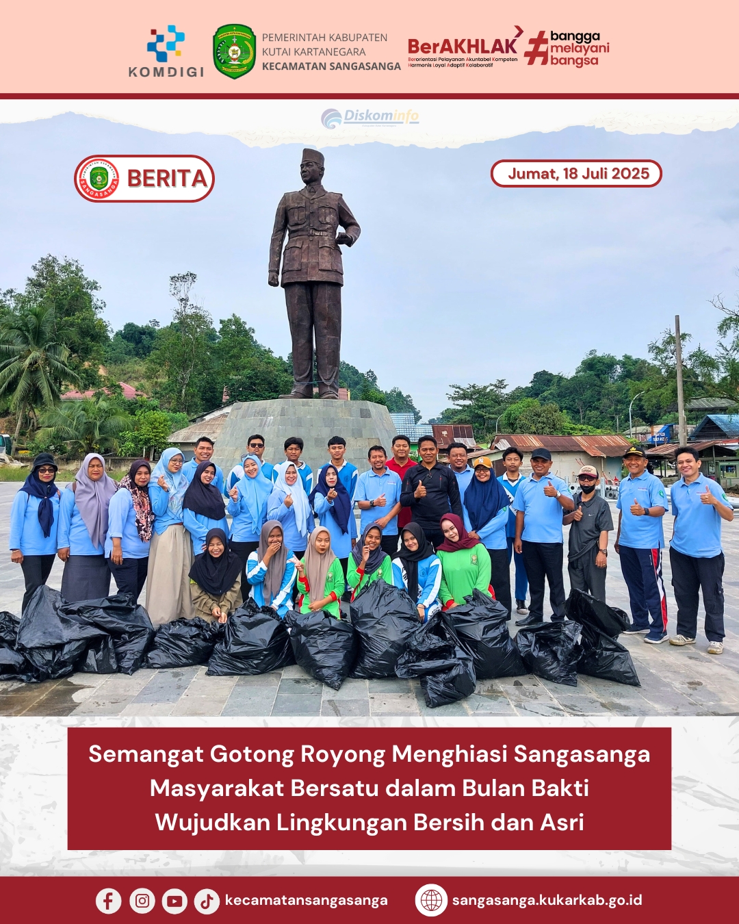 Pemerintah Kecamatan Sangasanga menyampaikan apresiasi setinggi-tingginya atas partisipasi dan semangat gotong royong yang luar biasa ini. Diharapkan kegiatan Bulan Bakti semacam ini dapat terus menumbuhkan kesadaran kolektif akan pentingnya menjaga kebersihan dan keindahan lingkungan demi kenyamanan bersama.