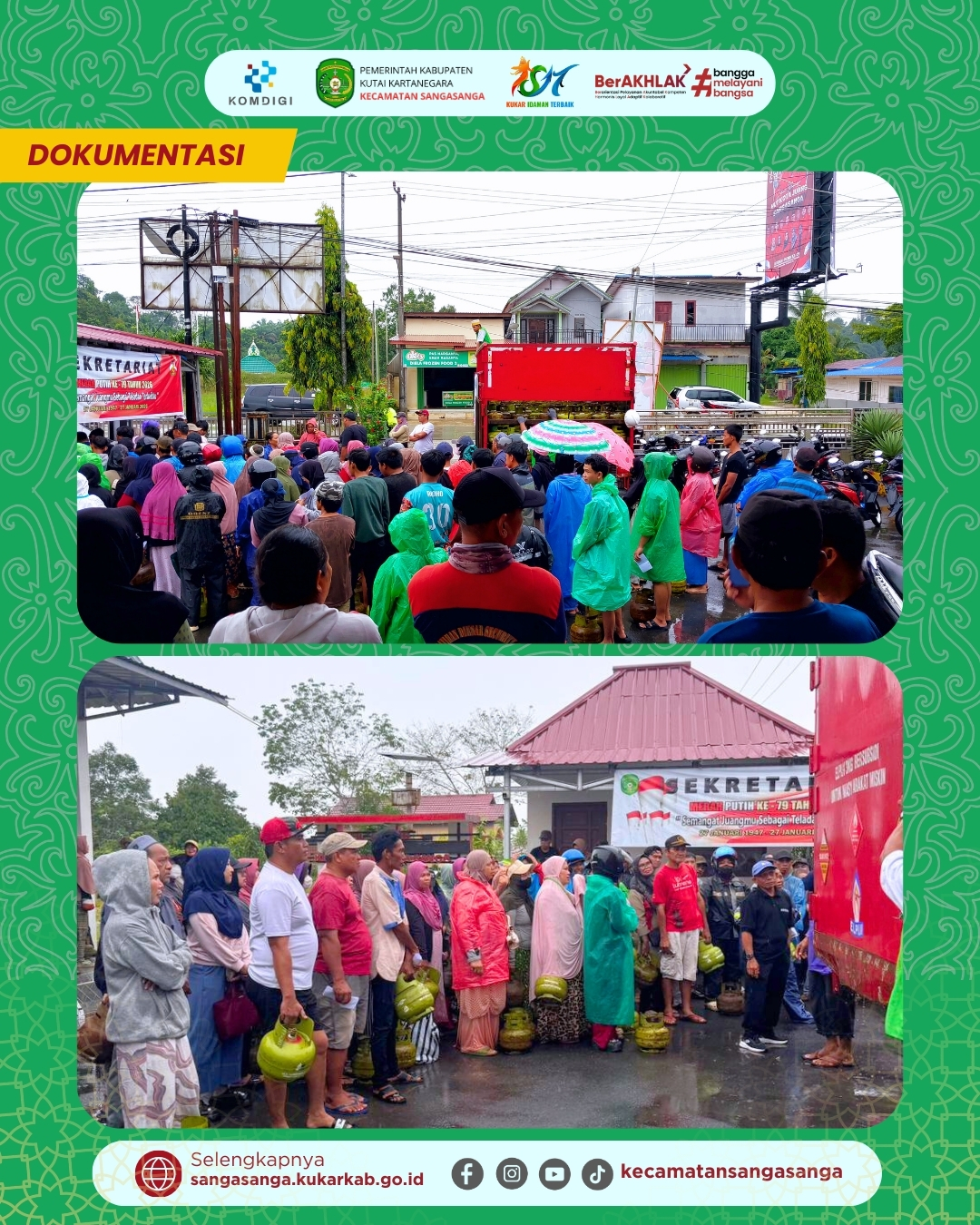 Antusiasme masyarakat terlihat sangat tinggi dengan antrean panjang yang memadati area kantor kecamatan, di mana banyak warga yang tetap bertahan menggunakan payung dan jas hujan sembari membawa tabung kosong mereka. Untuk mendapatkan hak beli, setiap warga diwajibkan memenuhi syarat administrasi berupa fotokopi Kartu Tanda Penduduk (KTP) dan Kartu Keluarga (KK) Sangasanga, dengan ketentuan satu identitas berlaku untuk pembelian satu tabung. Harga yang ditetapkan dalam operasi pasar ini adalah sebesar Rp19.000,- per tabung, sesuai dengan Harga Eceran Tertinggi (HET) yang berlaku. Penggunaan sistem syarat administrasi ini bertujuan agar penyaluran subsidi gas melon lebih tepat sasaran bagi masyarakat yang benar-benar membutuhkan. Petugas di lapangan terus mengimbau warga untuk menyiapkan uang pas guna mempercepat proses transaksi dan meminimalisir waktu tunggu di tengah kondisi cuaca yang basah.