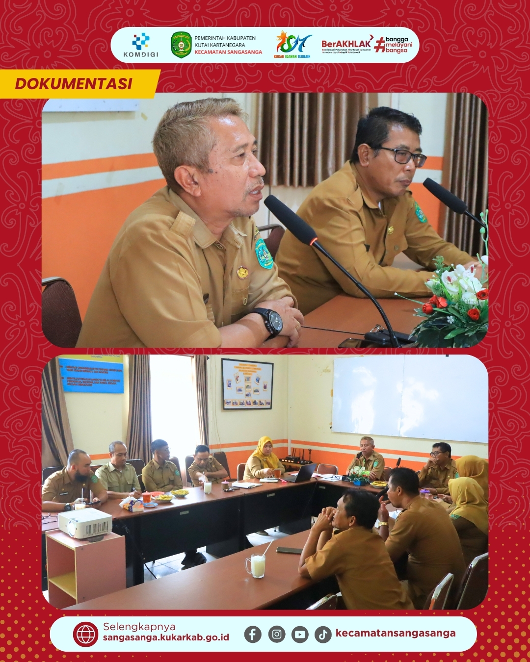 Rapat yang dimulai tepat pukul 09.00 WITA ini dilaksanakan segera setelah pelaksanaan apel pagi rutin. Kegiatan ini dipimpin langsung oleh Camat Sangasanga dan dihadiri oleh jajaran pimpinan strategis, di antaranya Sekretaris Kecamatan (Sekcam), para Lurah se-Kecamatan Sangasanga, Kepala Seksi (Kasi) Kecamatan, serta Kepala Sub Bagian (Kasubbag).