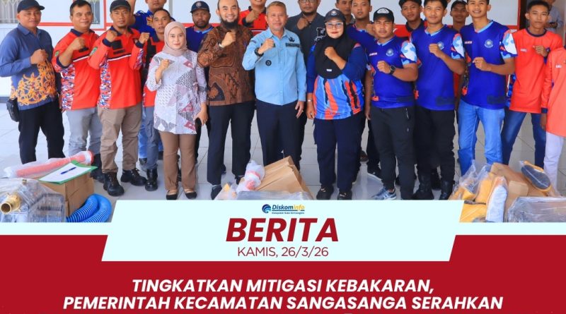 SANGASANGA – Pemerintah Kecamatan Sangasanga kembali menunjukkan komitmen nyata dalam upaya peningkatan kesiapsiagaan dan kapasitas masyarakat terhadap penanggulangan bencana kebakaran di tingkat lokal. Pada hari Kamis, 26 Maret 2026, bertempat di Kantor Camat Sangasanga, telah dilaksanakan prosesi penyerahan bantuan sarana prasarana pemadam kebakaran yang sangat krusial bagi keamanan wilayah. Kegiatan ini merupakan bagian dari program strategis untuk memperkuat garda terdepan penanganan api di lingkungan kelurahan melalui optimalisasi peran Relawan Pemadam Kebakaran (Redkar). Penyerahan bantuan ini disambut antusias oleh para relawan yang hadir untuk menerima fasilitas penunjang tugas kemanusiaan tersebut. Peralatan ini diharapkan dapat mempercepat respons awal saat terjadi insiden kebakaran sebelum bantuan lebih besar tiba di lokasi.