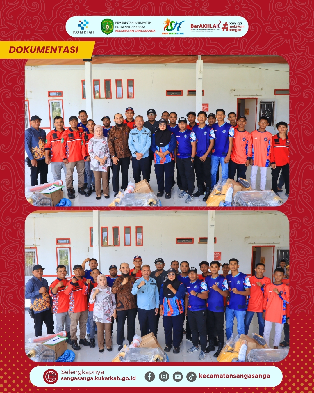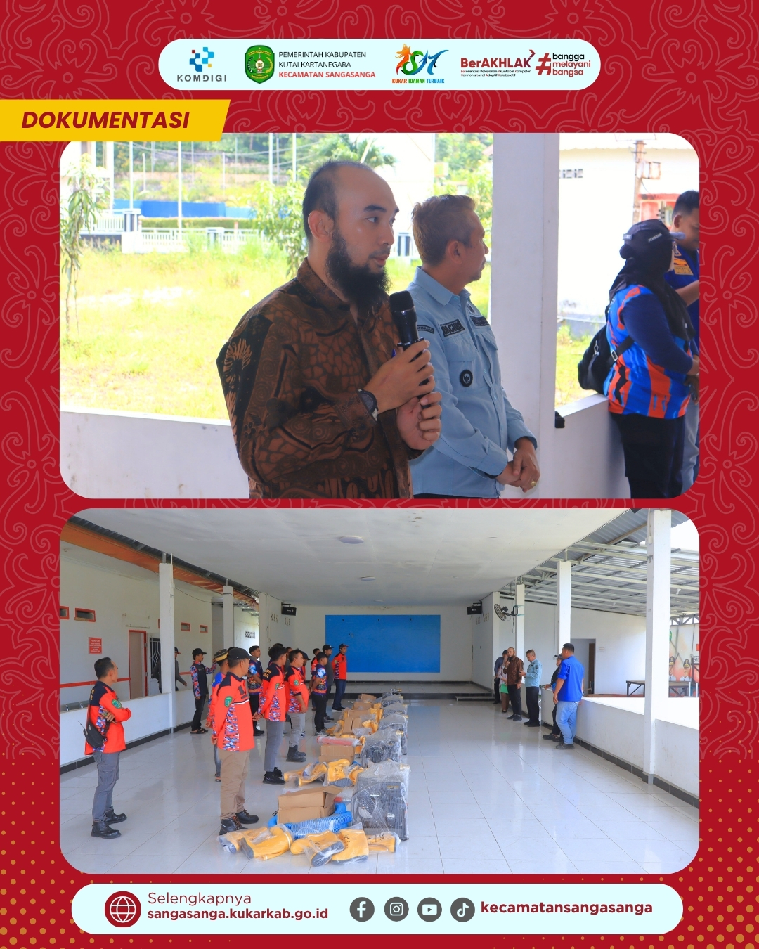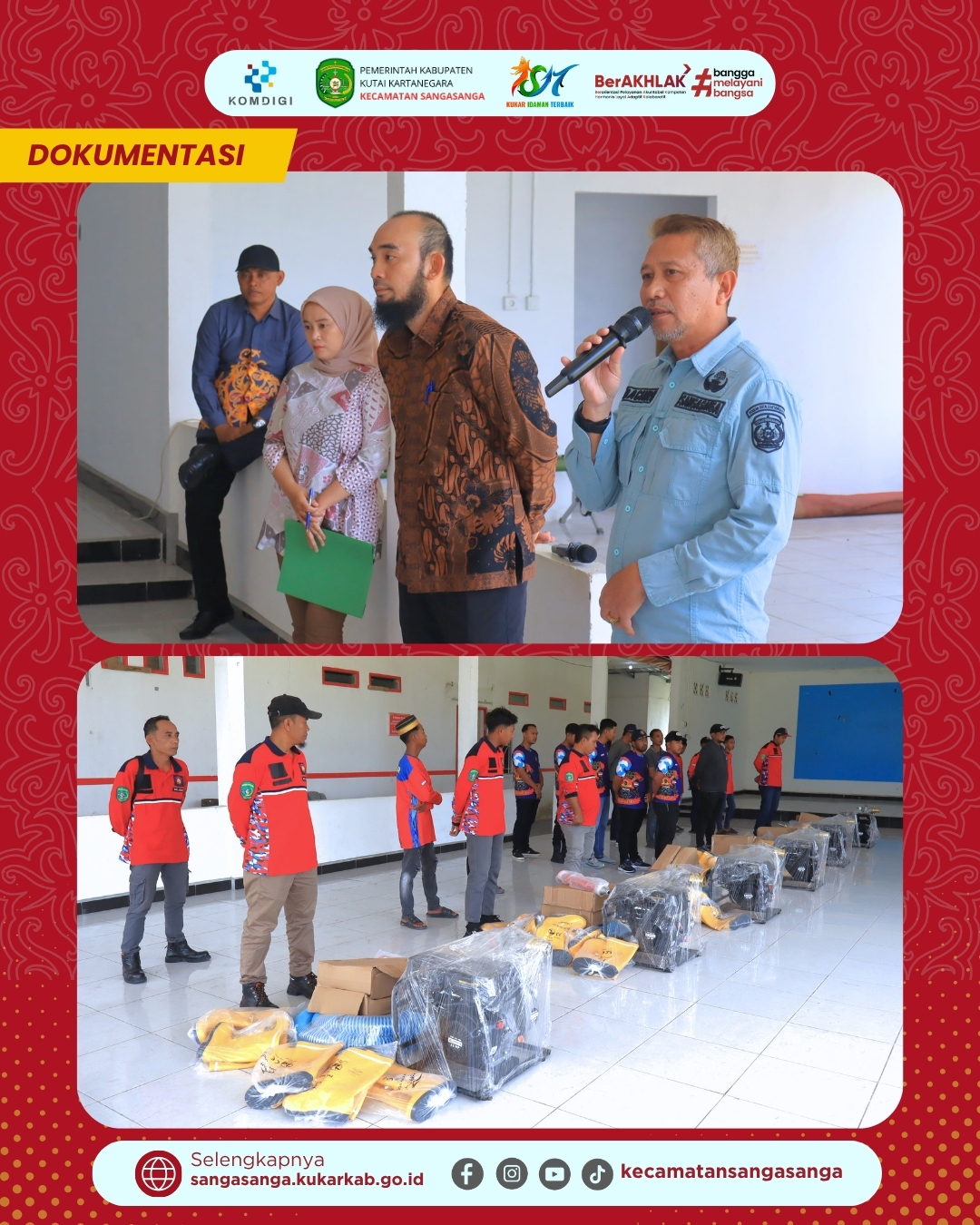 Camat Sangasanga, Muhammad Dachriansyah, dalam sambutannya menekankan bahwa penyerahan bantuan ini bukanlah akhir dari pembinaan, melainkan awal dari tanggung jawab besar bagi para Redkar. Beliau berpesan agar seluruh peralatan dijaga dengan baik melalui perawatan berkala agar memiliki usia pakai yang panjang dan performa yang tetap prima. Ke depannya, pihak kecamatan berencana untuk terus mengadakan pelatihan peningkatan kapasitas bagi personel Redkar agar selaras dengan kecanggihan alat yang telah dimiliki. Langkah ini merupakan bentuk implementasi dari semangat “BerAKHLAK” dan bangga melayani bangsa yang menjadi moto kerja aparatur pemerintah. Dengan kolaborasi yang solid antara pemerintah dan masyarakat, diharapkan Kecamatan Sangasanga dapat menjadi wilayah yang semakin aman dan tanggap terhadap bencana.